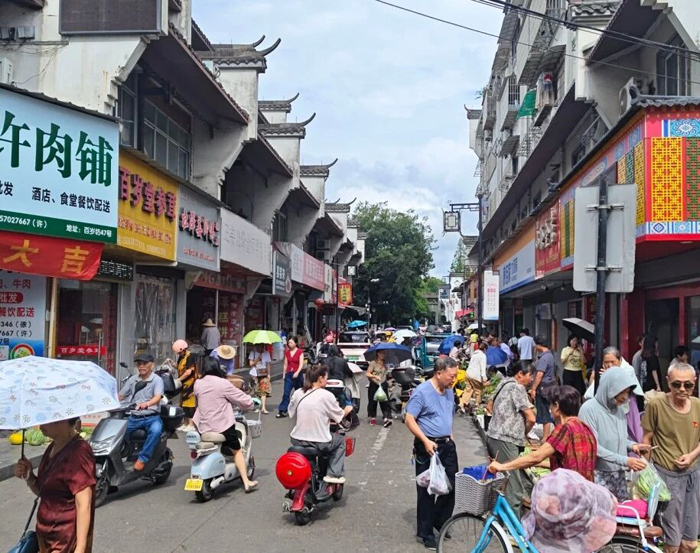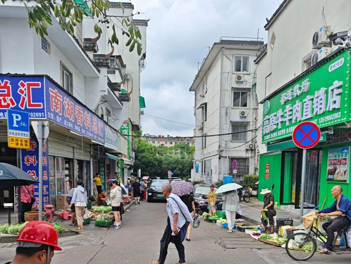 南湖菜场地处老城区核心区域,商业氛围浓厚。来自信安、万田、杜泽、云溪、石梁、航埠、九华等乡镇街道的农户,自发来到南湖菜场周边的百岁坊沿线随地摆摊,机动车道上也摆起来,数量多达上百个,带来了影响环境卫生、车辆拥堵、乱停放等一系列问题。