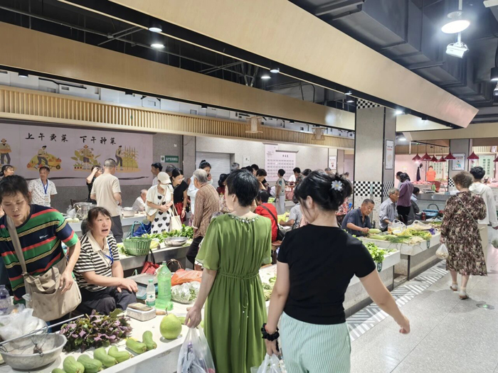 告别了风吹日晒,有划定的经营区域,还有免费的空调和茶水,幸福入市。原来菜场周边杂乱无序的摊点“消失”了,取而代之的是整洁有序的环境卫生,还有畅通无阻的道路交通。
