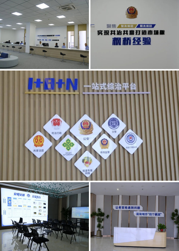 综治中心规范构建了“1+8+N”一站式综治平台体系,即1个指挥调度中心、8个功能模块、N个基层治理站点,整合公安、司法、法院、交警、市场监管、行政执法、街道网络等部门资源实行常驻办公,并引入市场调解中心、赊欠账调解委员会等专业力量,让分散的治理资源拧成一股绳,实行闭环跟踪化解,构建起市场多元共治的全新格局。