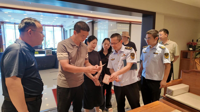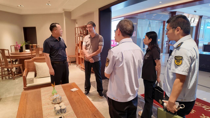 10月10日上午,金华市监督管理局信用监督管理处处长吴振铭,副处长宋卉,东阳市市场监督管理局副局长楼巧英,东阳市监督管理局信用监督管理科科长胡剑,副科长陆旭燕,东阳市市场监督管理局白云所副所长陈健一行赴东阳红木家具市场考察调研,东阳红木家具市场总经理曹伟全程陪同,热情接待。