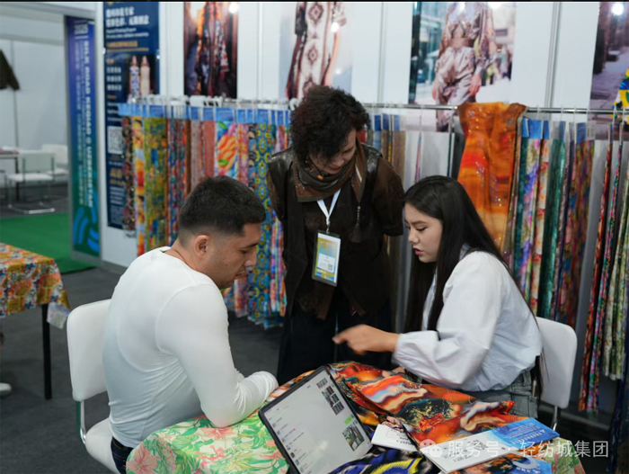 展会现场,51家纺城企业携万余款面料精心打造70个专属展位,面料涵盖户外功能面料、时尚化纤面料、绣花面料、各类针织面料及窗帘家纺等,充分展示了柯桥面料的多元化、时尚度和创新力。鑫绫隆纺织的锦氨双面布,具有高弹性和吸湿排汗等优点,受到瑜伽服、紧身衣运动服等相关产业采购商的欢迎;飞阔纺织的提花窗帘,凭借新颖的花型设计以及精致的肌理感,现场咨询不断,首日累计斩获近9千米订单;大邱纺织别具一格的西装面料和针织面料,深受采购商青睐,当日收获剪样需求20余个。10月16日,公司还将组织参展企业考察当地阿布萨黑批发市场,实地挖掘消费市场需求及纺织缺口,为进一步布局中亚打下基础。