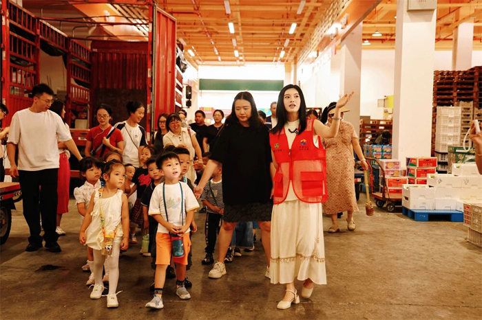 近日,农港城市场迎来了一批特殊的客人——洪家街道中心幼儿园的师生们。28名萌娃在老师和农港城党员志愿者服务队的带领下,通过沉浸式参观解锁藏在农港城市场关于农副产品流通的“秘密”。
