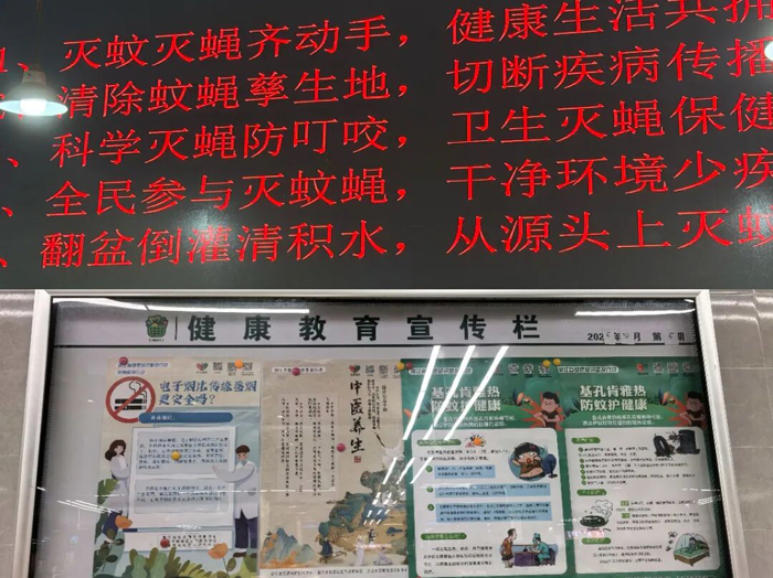 为提升全员参与度,公司通过分层级、多载体开展精准宣传。组织保洁人员召开专项会议,利用各市场23块显示屏循环播放科普内容,并发放90份主题海报,全面讲解蚊害与防护技巧。同时,建立“管理方日常巡查+商户摊位自查”的双重监督机制,压实主体责任,确保摊位周边环境卫生整洁。
