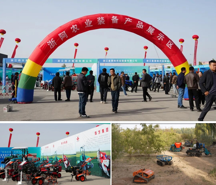 开幕式后,参会领导、专家等实地观看农机田间现场演示,随后走进农业机械展示区。浙江四方集团、星莱和农业装备有限公司等企业展示了手扶拖拉机、高速插秧机等国际领先产品,吸引众多当地农业合作社、企业、农户洽谈合作。活动同期,还开展了浙阿农业装备产业发展技术交流论坛,新疆农业科学院农业装备研究所和浙江省农业机械研究院的专家以特色林果智能装备技术研究和应用等为题展开探讨,通过交流合作提升新疆农业机械化水平。