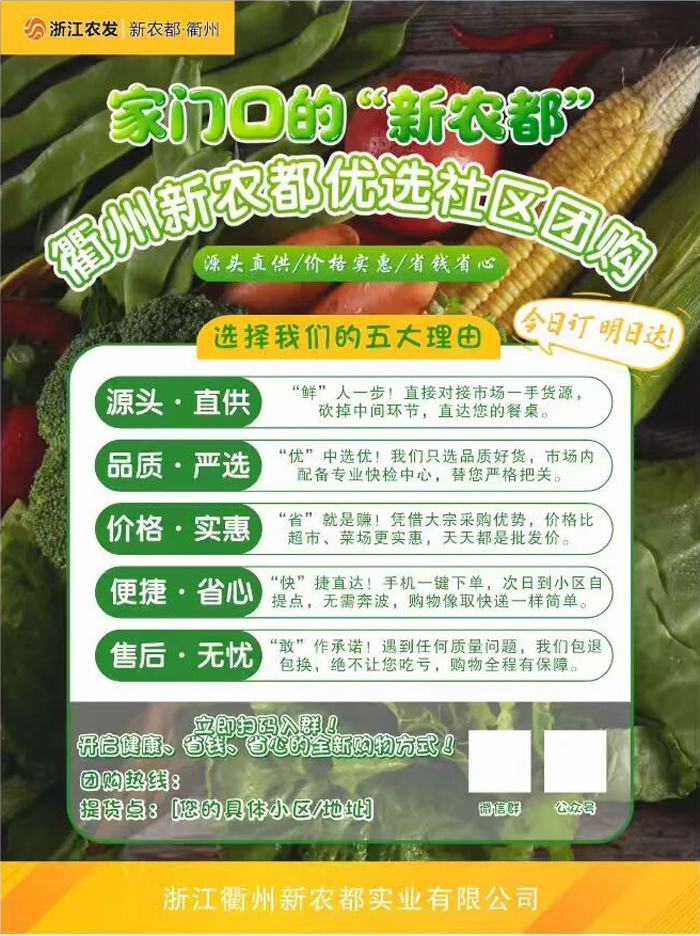 面对零售格局变化,衢州新农都重磅启动社区团购赋能计划,为经营户零成本开拓线上新渠道。该计划依托市场品牌公信力与供应链优势,提供从团长对接、运营支持到物流配送的一站式解决方案。