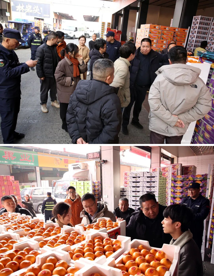 包宏进一行参观了市场国产水果交易区,通过实地考察,了解市场整体经营情况,并重点对涌泉蜜桔的销售情况进行了深入了解。