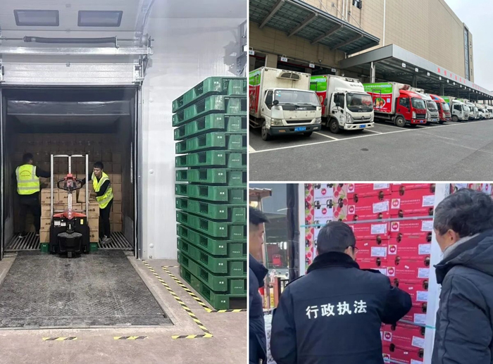 为精准对接节日消费需求,物流中心打出保供“组合拳”。一方面提前联动经营户组织货源、加大备货力度,深入推进产销对接,主动与全国各大水果产区建立紧密联系,搭建稳固供需桥梁,同时扩大柑橘、苹果、冬枣等耐储水果采购规模,增强供应稳定性;另一方面积极协调相关部门开通水果运输绿色通道,缩短运输等待时间,降低极端天气导致的延误与损耗。