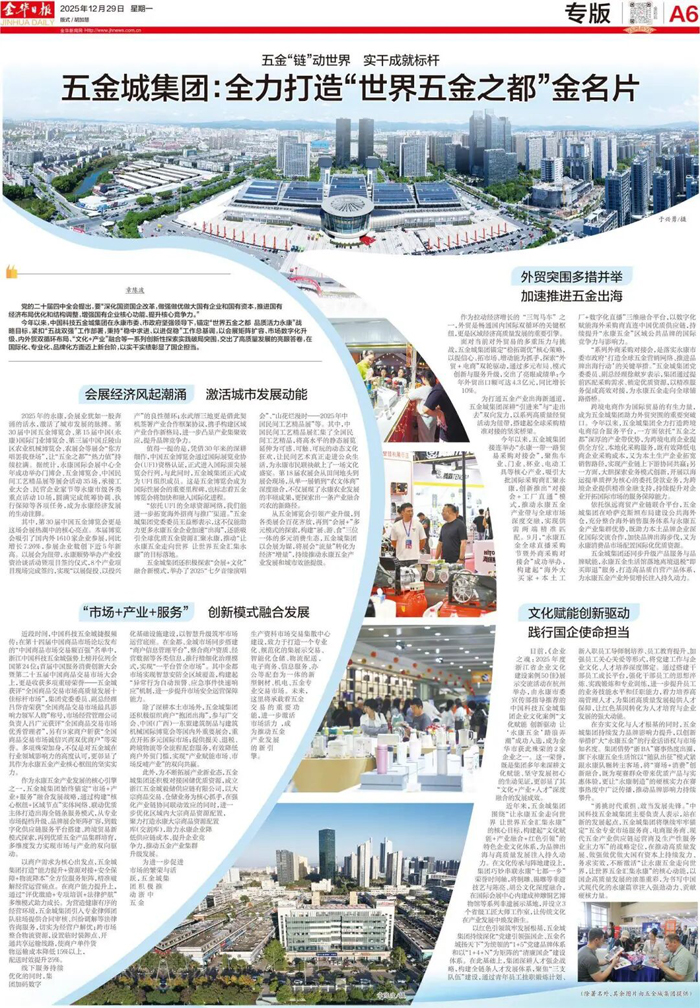 作为永康五金产业发展的核心引擎之一,五金城集团始终锚定“市场+产业+服务”融合发展战略,通过构建“核心枢纽+区域节点”实体网络、联动优质主体打造出海全链条服务模式,从专业市场提档升级、品牌展会矩阵扩容,到数字化供应链服务平台搭建、跨境贸易新模式探索,再到优质五金产品集群培育,多维度发力实现市场与产业的双向驱动。