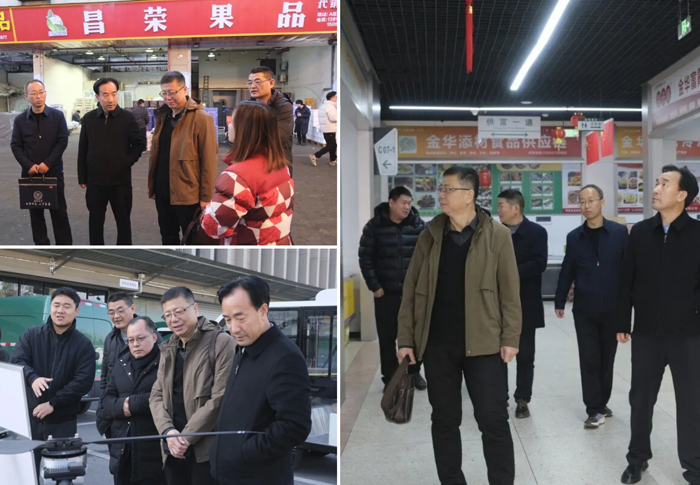 韩世文一行走访市场各交易区、冷链物流园、寄递共配中心和数字化管理平台,与市场经营户面对面深入交流,询问水果产地、销售行情等,重点了解市场运营管理模式、现代化农产品流通体系建设以及数字化管理平台的应用成效。