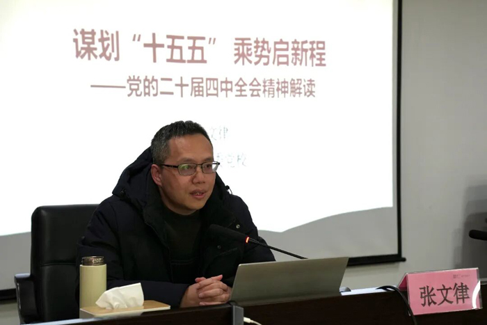 温州市委党校经济学教研部主任、温州市经济学会副会长、温州市党校系统名师张文律,以“共同富裕菜篮子实践与党校赋能”为主题授课,结合政策精神解读与企业实践分析,明确党校党建引领、智力赋能、人才培育的合作方向,凝聚校企协同共识。