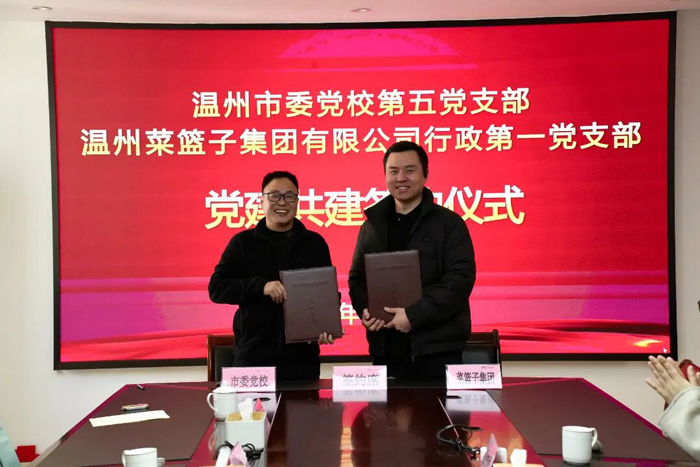 调研团队走访菜篮子集团党群服务中心、“衡”主题企业文化展厅,了解以“惠民为本 民生为鲜”为核心的党业融合构建思路,实地感受其在农贸无边界运营、生鲜供应链、保供稳价等领域的民生担当与产业成效,为党业融合实践教学积累鲜活案例。调研期间,温州菜篮子集团行政一支部与市委党校第五党支部正式签订共建协议,以支部共建为纽带,搭建起校企资源共享、协同发展的长效合作平台。
