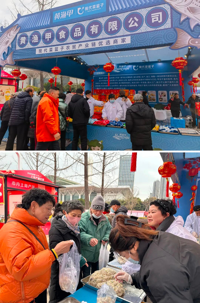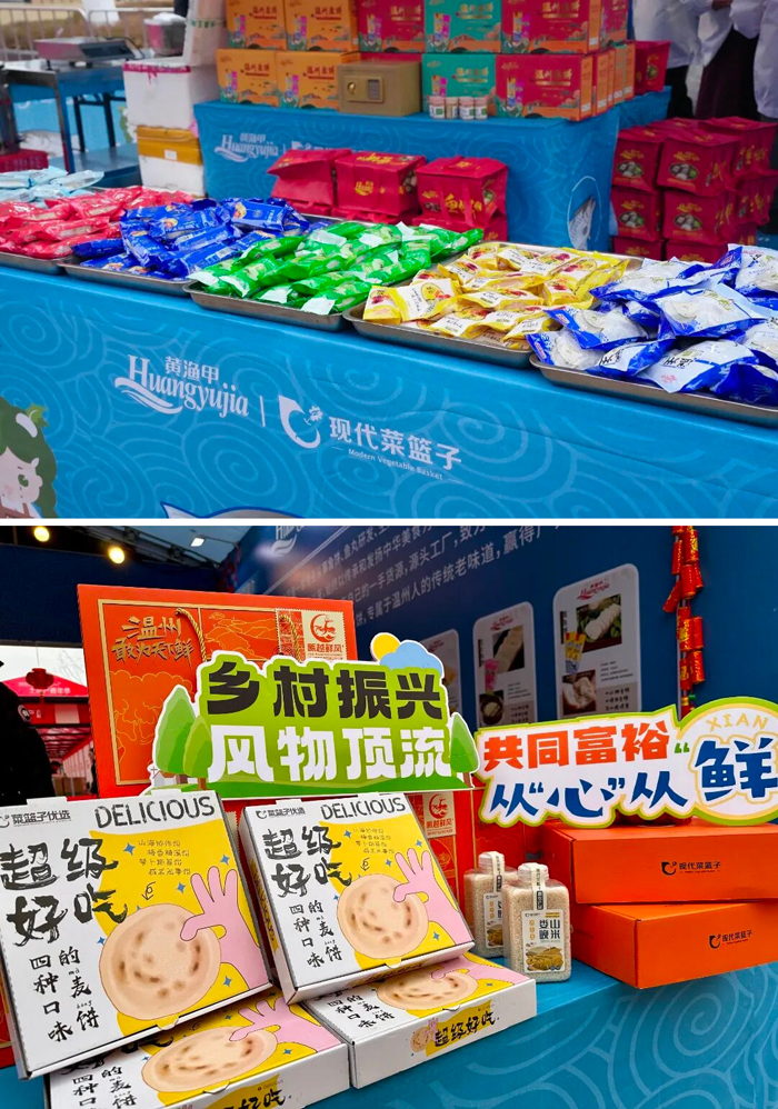 在品牌特装区,温州菜篮子集团携旗下现代冷链物流中心的标杆商户暨农贸产业链深度合作商——黄渔甲食品有限公司,共同呈现从深海到餐桌的优质水产加工产品链条,并重点推介了集团自有品牌“菜篮子优选”系列产品,生动展示了从海洋牧场、田间地头到市民餐桌的产业链。