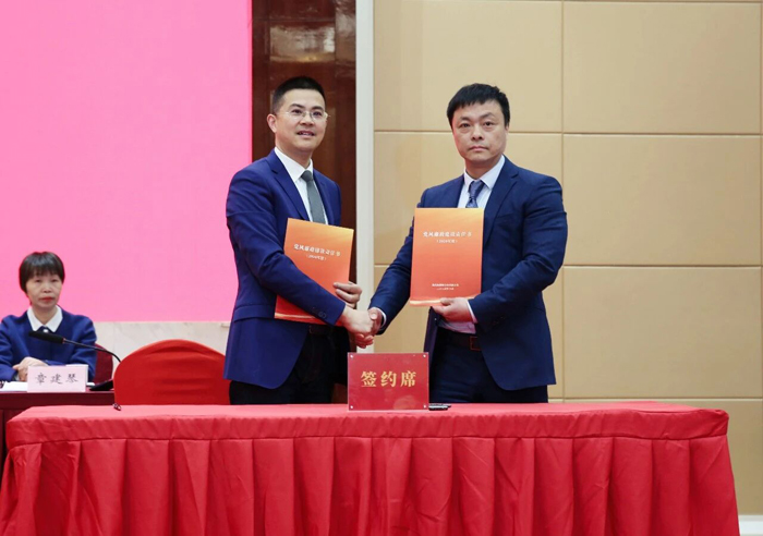 嘉兴市供销社党委书记、理事会主任钱松华与嘉兴水果市场党总支书记、副总经理何浩签订党风廉政建设责任书。