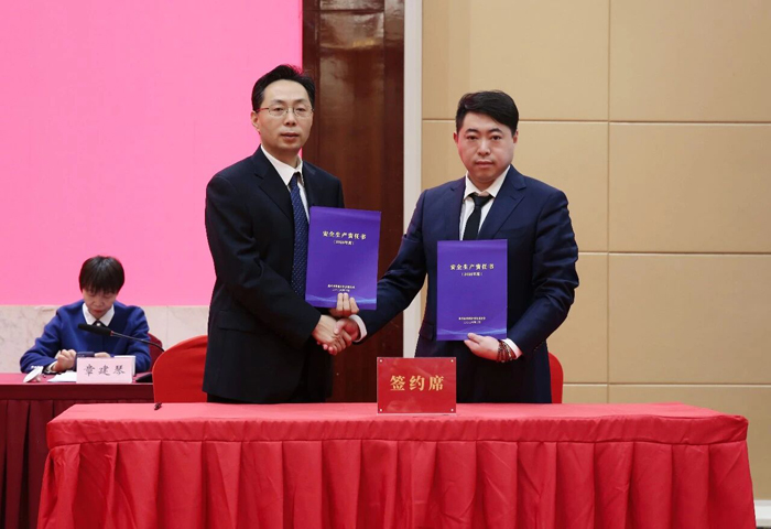 嘉兴市供销社党委副书记、理事会副主任周建杰与嘉兴水果市场总经理尤陆琦签订安全生产责任书。