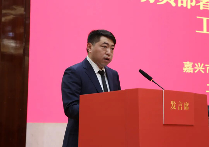 嘉兴水果市场总经理尤陆琦作表态发言。