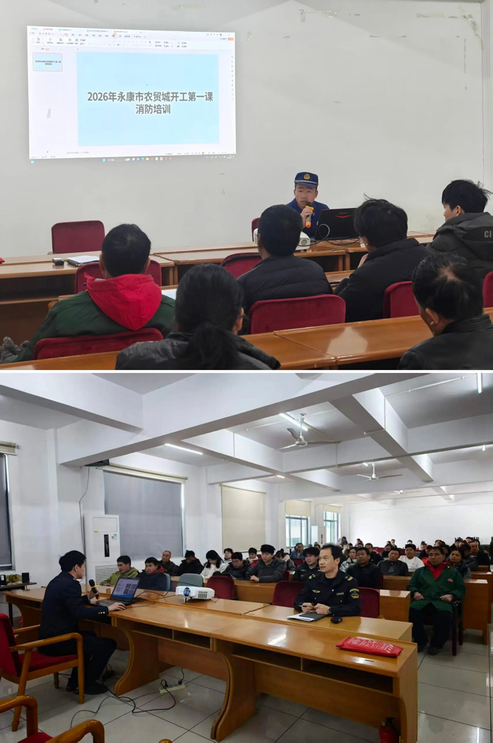 为深入贯彻落实上级岁末年初安全防范工作部署,有效预防和遏制各类安全生产事故,严格规范安全生产制度落实,全力护航永康农贸城复工复产安全,永康农贸城组织开展“开工第一课”宣传教育活动,全面夯实农贸城安全复工基础,筑牢平稳复工复产防线。
