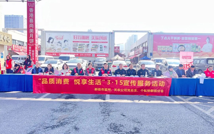为守护消费者合法权益,将普法与便民服务送到群众身边,3月10日上午,天农公司党总支联合新街市监所、个私协新街分会共同举办“品质消费 悦享生活”3·15宣传服务活动。