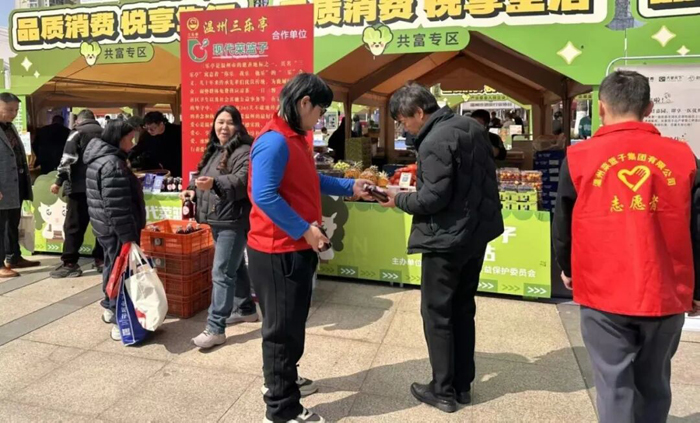 此外,还联合温州三乐亭公益组织设立公益互动区,提供爱心茶点等暖心服务,让市民在逛展购物中感受社会温情。这是双方深化合作的具体实践,依托“志愿服务共建点”,常态化开展爱心活动,构建起“商户参与、社区受益、品牌增值”的良性循环。