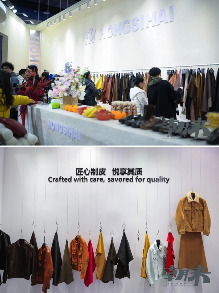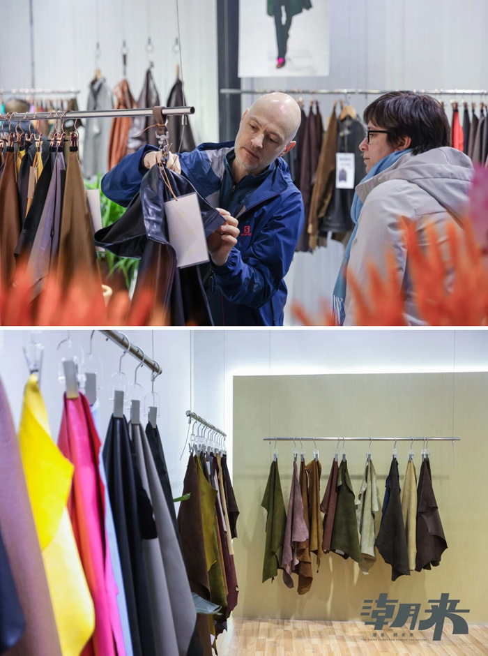 2.5万平方米展区内,皮革毛皮区、羽绒区、时装面料区、设计区、优材区、机械区、户外面料区交相辉映,100余家优质供应商群星闪耀。“高品质”“可持续”“轻量化”成为展商与客商交流互动的高频词汇,勾勒出2026秋冬面辅料的主流趋势。