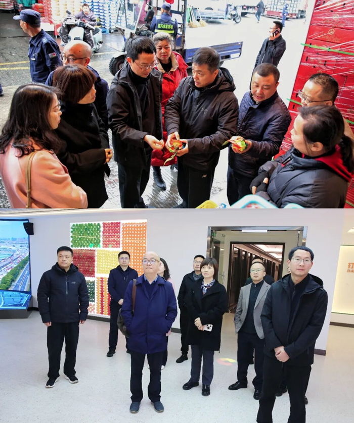 唐锐一行参观了市场国产水果交易区,市场客厅等区域,通过实地考察,了解市场整体经营情况,重点对丹棱及周边地区的柑橘类水果交易情况进行了深入了解。