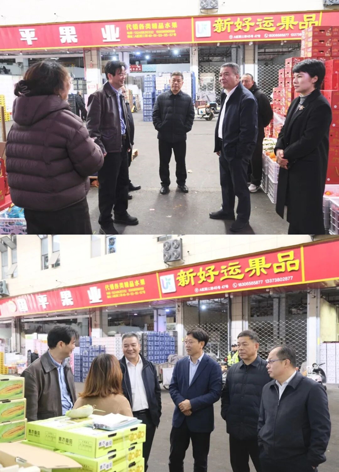 童日晖一行先后深入市场交易区、冻品市场等重点区域,实地察看市场运营管理情况,与经营户面对面交流,详细了解商户经营状况、农产品产销行情,认真听取物流中心在业态布局优化、冷链物流建设、为农服务落地等方面的工作举措与成效汇报。