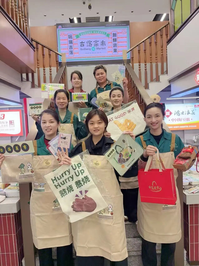 瞧瞧儿......,古荡菜市里这些年轻的姑娘小伙们数分钟内集合完毕,争先恐后为这些新鲜又好玩的菜市文创产品代言。