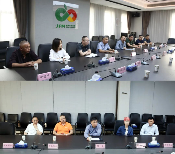 4月27日,兰溪市政协副主席雷启余一行赴嘉兴水果市场考察对接,兰溪市政协资农委主任金建高,兰溪市供销社党委书记、理事会主任李俊,嘉兴水果市场副总经理何浩,产地种植企业以及市场经营户等参加座谈会。